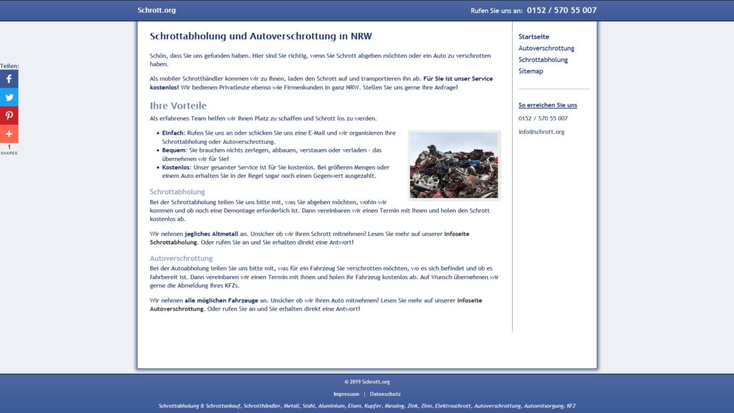 Wer eine seriös auftretende und kostenlose Schrottabholung in NRW sucht, der ist mit der Firma schrott.org rundum bestens bedient!