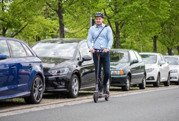 Um E-Scooter im Straßenverkehr zu nutzen, braucht man eine Versicherung. Foto: HUK-COBURG. Weiterer Text über ots und www.presseportal.de/nr/7239 / Die Verwendung des Bildes für redaktionelle Zwecke ist honorarfrei, wenn der Abdruck mit korrekter Quellenangabe erfolgt. Quellenangabe: „HUK-COBURG/Hagen Lehmann“