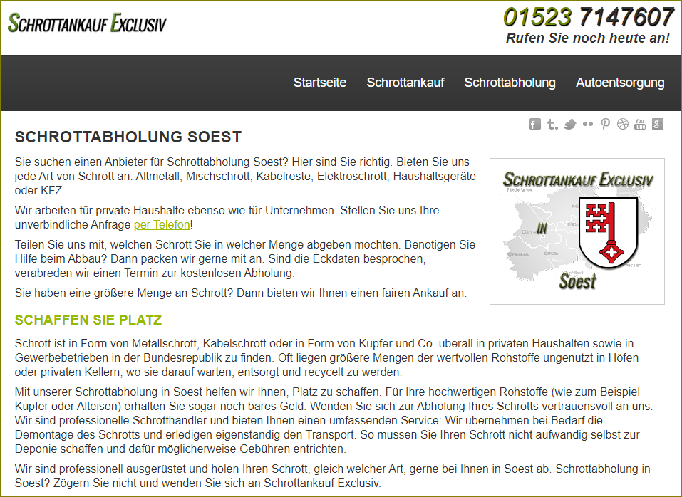 Mit der kostenlosen Schrottabholung in Soest von Schrottankauf Exclusiv werden Sie bequem Ihren Schrott los, können noch mit einem netten Verdienst rechnen und tun etwas Gutes für die Umwelt.