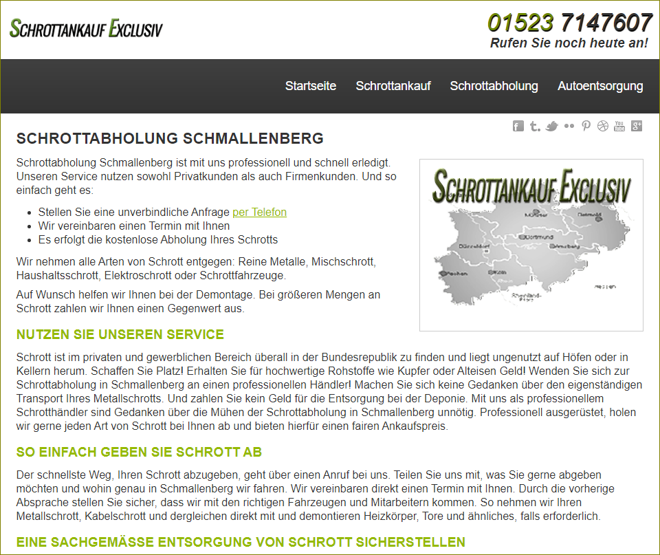 Wir sind hier in der Ruhrgebietsgroßstadt Schmallenberg ein professioneller Dienstleister rund um das gesamte Thema Schrott. Unser Service Schrottankauf in Schmallenberg gliedert sich in Abholung & Ankauf. Entsorgung von Altmetalle und Buntmetallen, der Umgang mit einer sachgerechten Entsorgung kann für sie Schwierig sein. Das Problem beginnt mit der Zerlegung von Bauteilen im Wohngebäude, in Stallungen, Lagerhallen oder in einer ausgedienten Industriehalle. Unter dem Begriff Buntmetall subsummieren wir alle gebrauchten, noch verwertbaren Arten und Sorten an Metall. Wir machen es unseren Kunden denkbar einfach nach dem Motto: Anruf reicht aus. Wenn die Kunden etwas zu entsorgen beziehungsweise Schrott zu entsorgen oder zu verkaufen haben, dann nehmen sie Kontakt zu uns in Schmallenberg auf.