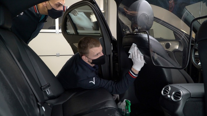 Nikolai Reetz, Geschäftsführer der Autolackaffen GmbH ergänzt: „Bei einer Corona-konformen Fahrzeugreinigung kommt es vor allem darauf an, dass alle wichtigen Kontaktflächen innen und außen sowie im Fahrer- und Fahrgastbereich gereinigt werden. Oft werden die Anschnallgurte oder die Kopfstützen vergessen. Wer hier mit System vorgeht und die richtigen Reinigungsmittel verwendet, hat innerhalb von wenigen Minuten wieder ein hygienisch einwandfreies Fahrzeug. Unsere Empfehlung: Es sollten nicht zu scharfe Mittel verwendet werden, die viel Alkohol beinhalten. Diese können das Material mit der Zeit in Mitleidenschaft ziehen. Besser sind hier Produkte auf Milchsäurebasis, die das Leder, Kunstleder und die glatten Oberflächen schonend aber effektiv reinigen.“