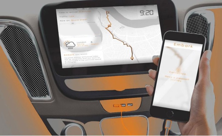 Bei „Embark“ handelt es sich um einen barrierefreien und integrativen Taxiservice, der eine Smartphone-App und eine Flotte von selbstfahrenden Elektrofahrzeugen umfasst. Die Nutzer rufen das Fahrzeug mit der App und steigen über eine Seitentürrampe ein. Das WLAN an Bord ermöglicht es den Fahrgästen, während der Fahrt auf das Internet zuzugreifen, um beispielsweise Musik zu hören. Das Fahrzeug würde auch mit anderen autonomen Fahrzeugen vernetzt, um die effizientesten Strecken zu berechnen und verfügbare Parkplätze zu finden. Die Zahlung würde pro Kilometer oder über ein monatliches Abonnement erfolgen.