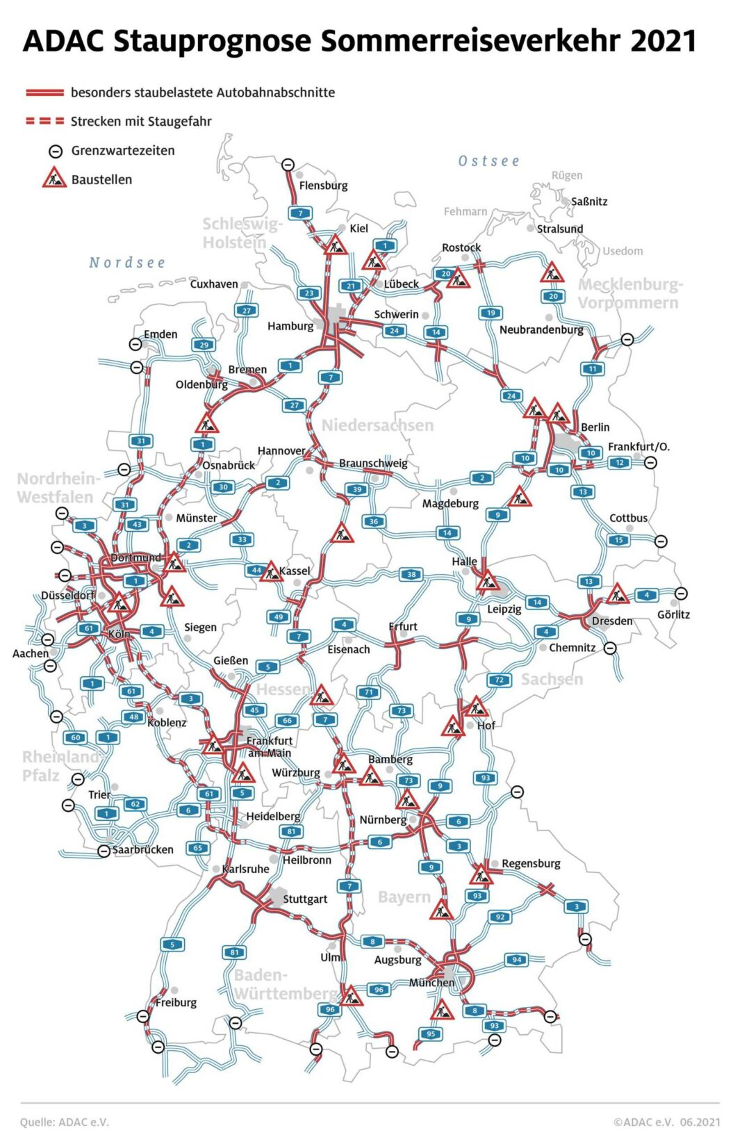 Auch in den Nachbarländern wird die Urlauberkarawane zeitweise zum Erliegen kommen. Die meisten europäischen Länder haben schon Sommerferien – seit diesem Wochenende auch Frankreich, alle österreichischen Bundesländer und weite Teile der Schweiz. Zu den Problemstrecken zählen Tauern-, Fernpass-, Brenner-, Karawanken- und Gotthard-Route sowie die Fernstraßen zu den italienischen, kroatischen und französischen Küsten. Sehr angespannt ist die Verkehrssituation auch auf den Zufahrtsstraßen der Ausflugsregionen im untergeordneten Straßennetz der Alpenländer. Reisen in den hohen Norden oder an die belgische und holländische Küste werden ebenfalls nicht staufrei abgehen.