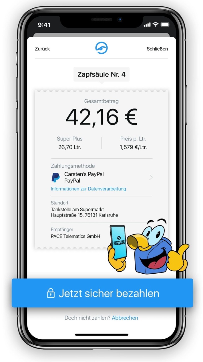 In der Praxis ist der Bezahlvorgang leicht, sicher und schnell: Die App erkennt automatisch, ob man sich gerade an einer der teilnehmenden Tankstellen befindet. Jetzt wird nur noch die Zapfsäule ausgesucht, die Transaktion wird autorisiert und schon kann man weiterfahren. Der Beleg wird bequem in der App hinterlegt.