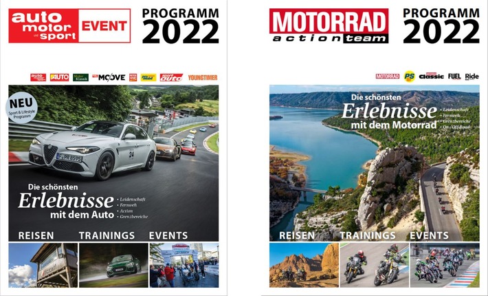 Insgesamt 60 Seiten nehmen die Angebote von Auto-Trainings und -Reisen ein. Bei den Trainings werden insgesamt neun unterschiedliche Formate angeboten. Dazu kommen 14 Reisen, sieben 4×4-Touren wie auch Reisemobil-Touren. Die Rallye-Klassiker bilden eine Säule des umfangreichen Eventprogramms der Motor Presse: die vier beliebten Classic-Rallyes Paul Pietsch Classic, Silvretta Classic Rallye Montafon, Sachsen Classic und Luxembourg Classic, darüber hinaus die AUTO MOTOR UND SPORT Mobility-Rallye für Autos mit alternativen Antrieben.