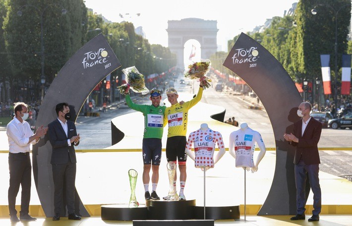 Für seinen bereits zweiten Gesamtsieg bei der Tour de France nahm Tadej Pogačar am Sonntag auf den Pariser Champs-Élysées den von ŠKODA AUTO entworfenen Siegerpokal aus tschechischem Kristallglas entgegen. Der 22-jährige Slowene setzte sich beim wohl anspruchsvollsten Radrennen der Welt über 3.414 Kilometer gegen die Konkurrenz durch. Der vollelektrische ŠKODA ENYAQ iV führte das Peloton auf der Schlussetappe von Chatou nach Paris erneut als Führungsfahrzeug (‚Red Car‘) an. ŠKODA AUTO unterstützt den Radsportklassiker seit 2004 als Hauptpartner.