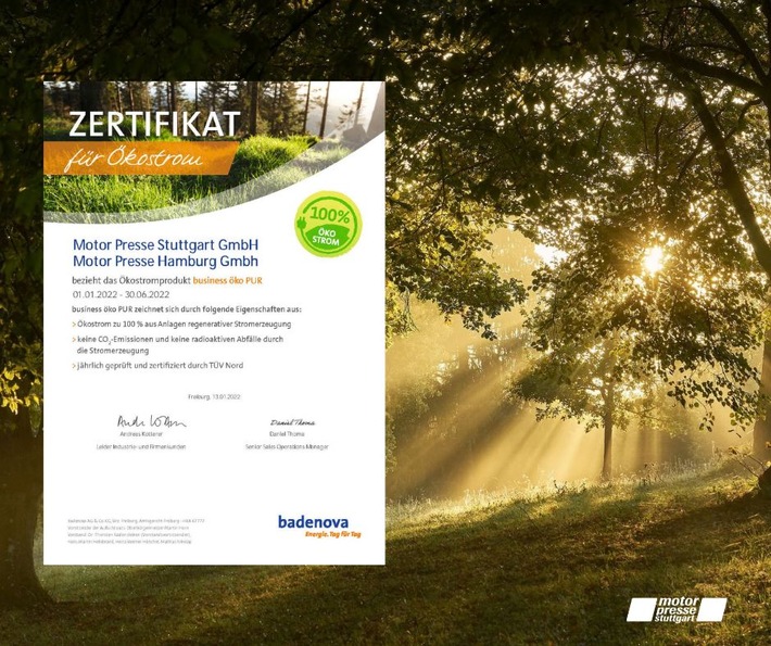 Stuttgart (ots) Seit dem Jahreswechsel wird an den beiden Hauptstandorten Stuttgart und Hamburg des Special-Interest-Medienhauses Motor Presse Stuttgart ausschließlich mit Strom aus erneuerbaren Energien gearbeitet. Somit fahren auch die Elektrofahrzeuge des Fuhrparks sowie die elektrischen und Hybrid-Testmodelle der Motortitel emissionsfrei, sofern sie an einer der hauseigenen zwölf Ladesäulen betankt wurden. In Kürze wird die Motor Presse dieses Angebot um weitere 20 Lademöglichkeiten ausbauen.
