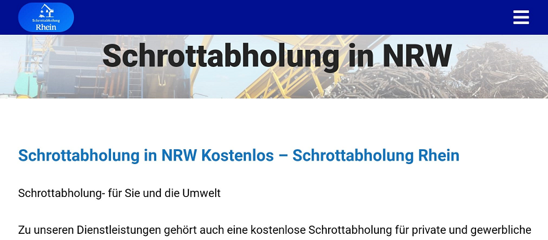 kostenlose und unkomplizierte Schrottabholung in Nordrhein-Westfalen und Umgebung an. Unsere zuverlässige