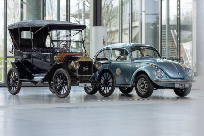 Wolfsburg (ots) Besucherinnen und Besucher der Autostadt in Wolfsburg können ab sofort einen Weltmeister auf der Piazza erleben. Am 17. Februar 1972 lief in Halle 12 des Werks Wolfsburg der 15.007.034. in Serie montierte Käfer vom Band und brach damit den Produktionsrekord des von der Ford Motor Company gebauten Modells T. Anlässlich dieses Meilensteins in der Unternehmensgeschichte von Volkswagen präsentiert die Autostadt beide Fahrzeuge auf der Piazza.