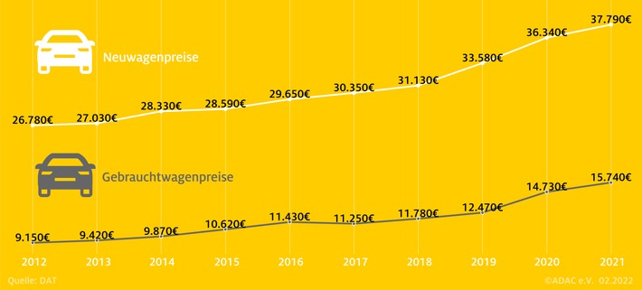 München (ots) Der aktuelle Report der Deutschen Automobil Treuhand (DAT) zeigt: Die Preise für Gebrauchtwagen haben stark zugelegt, seit 2019 um satte 25 Prozent. Kostete ein gebrauchtes Autos 2019 im Durchschnitt noch 12.470 Euro, mussten Käufer im vergangenen Jahr dafür 15.740 Euro aufbringen. Der ADAC hat Tipps, wie man trotz der angespannten Lage beim Gebrauchtwagenkauf Geld sparen kann.