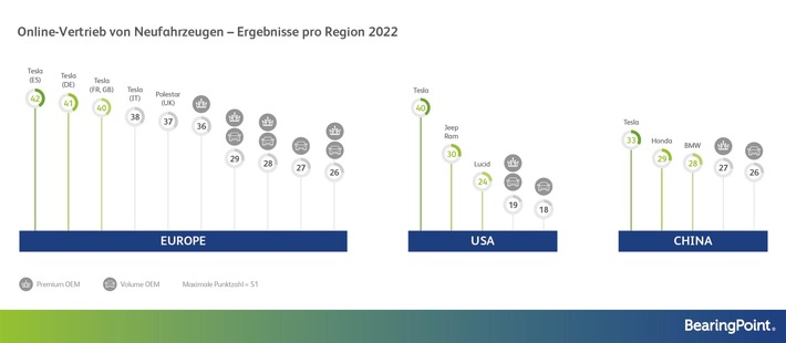 Frankfurt am Main (ots) Die Management- und Technologieberatung hat erneut den aktuellen Stand des Online-Neuwagenverkaufs in China, Europa und den USA bewertet. Dabei wird deutlich: Tesla bekommt Konkurrenz.
