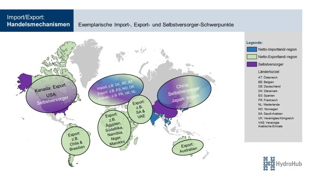 Mit Blick auf die globalen Handelsrouten kristallisieren sich bei Wasserstoff einige Schwerpunkte heraus: