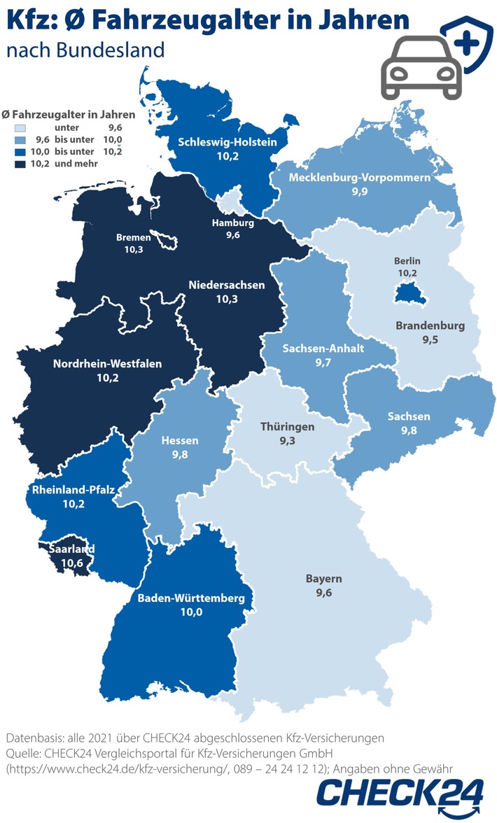 Datenbasis: alle 2021 über CHECK24 abgeschlossenen Kfz-Versicherungen Quelle: CHECK24 Vergleichsportal für Kfz-Versicherungen GmbH (https://www.check24.de/kfz-versicherung/, 089 – 24 24 12 12); Angaben ohne Gewähr / Weiterer Text über ots und www.presseportal.de/nr/73164 / Die Verwendung dieses Bildes ist für redaktionelle Zwecke unter Beachtung ggf. genannter Nutzungsbedingungen honorarfrei. Veröffentlichung bitte mit Bildrechte-Hinweis.