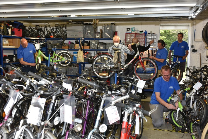 Fahrradwerkstatt für Geflüchtete - Ford Freiwillige reparieren Fahrräder für bedürftige Menschen