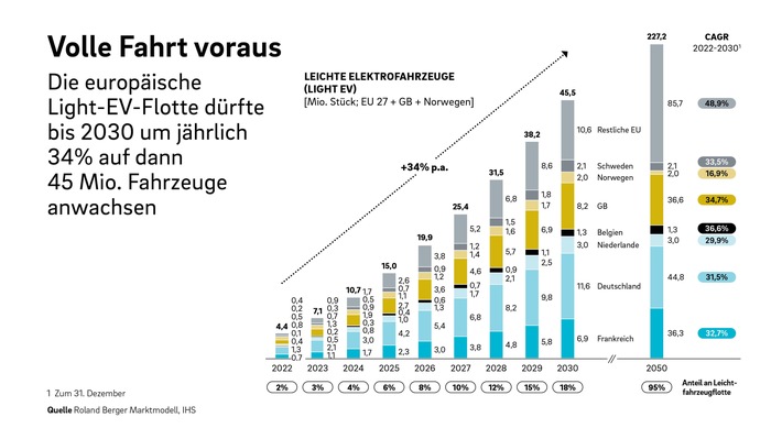 Europäischer Markt für Elektroauto-Ladestationen nimmt bis 2025 Fahrt auf. E-Fahrzeuge im Pkw-Sektor legen in Europa stark zu: Wachstum von 4,4 Millionen Fahrzeugen im Jahr 2022 auf 45,5 Millionen bis 2030 prognostiziert