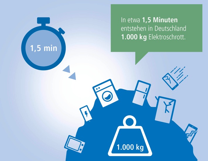 • In etwa 1,5 Minuten entsteht in Deutschland ein Elektroschrottberg im Gewicht von 1.000 Kilogramm.