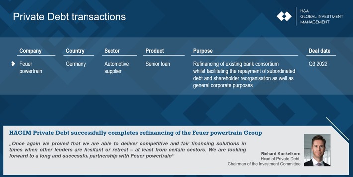 HAGIM Private Debt beweist mit dieser Transaktion erneut ihre Fähigkeit im Umgang mit komplexen Situationen sowie die verlässliche Lieferfähigkeit – auch in einem angespannten Marktumfeld.