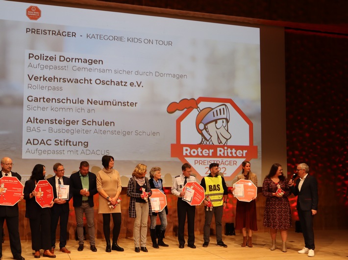Unter der Schirmherrschaft des Bundesverkehrsministers wird seit 2010 alle zwei Jahre besonderes Engagement für mehr Sicherheit von Kindern im Straßenverkehr im Rahmen der Preisverleihung „Der Rote Ritter“ von dem Verein Aktion Kinder-Unfallhilfe e.V. gewürdigt. Dabei werden u. a. Unternehmen, Gemeinden, Schulen und Privatpersonen ausgezeichnet, die Kinder sicherer durch den Straßenverkehr lotsen. In diesem Jahr freut sich die ADAC Stiftung über die Auszeichnung. Das Verkehrssicherheitsprogramm „Aufgepasst mit ADACUS“ zählte am 11.11.2022 zu den glücklichen Gewinnern.