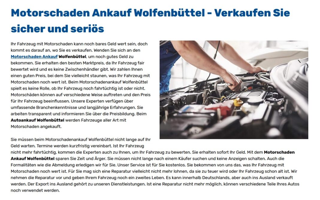 Autoankauf Wolfenbüttel Rund um den Gebrauchtwagenverkauf gibt es zahlreiche typische Fehler, die es zu vermeiden gilt. Insbesondere im Vergleich mit dem Verkauf unter Privatpersonen sind die Verkäufer eines Gebrauchten mit dem Autoankauf Wolfenbüttel stets auf der sicheren Seite bei Gebrauchtwagen mit Motorschaden.
