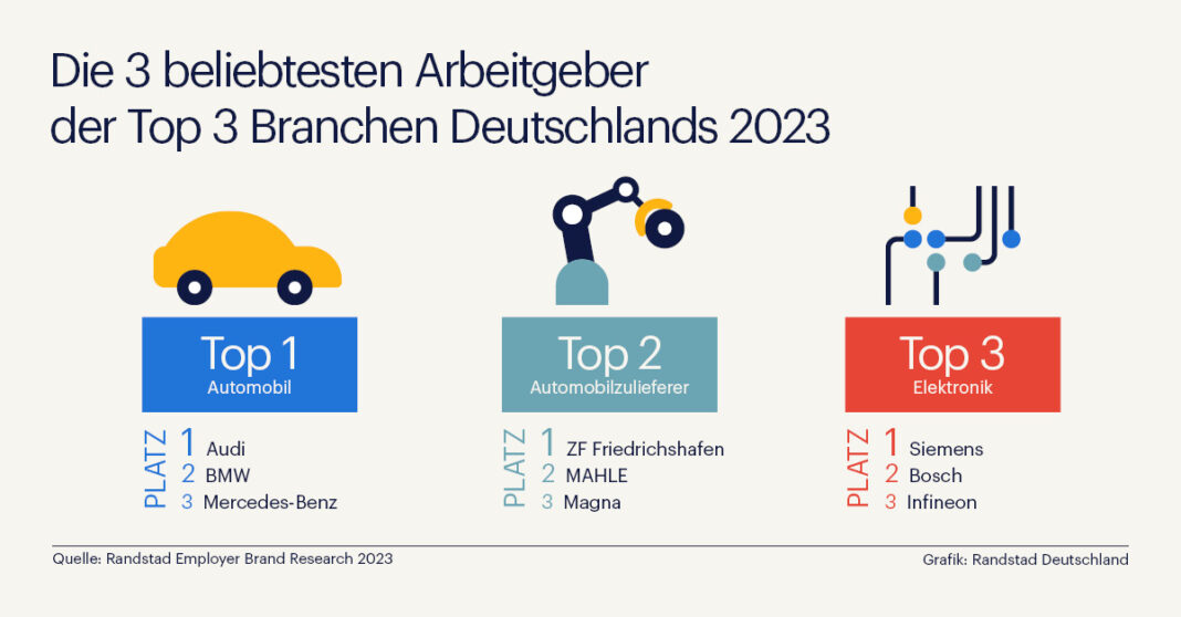 Die Top 3 der beliebtesten Branchen und Arbeitgeber Deutschlands 2023