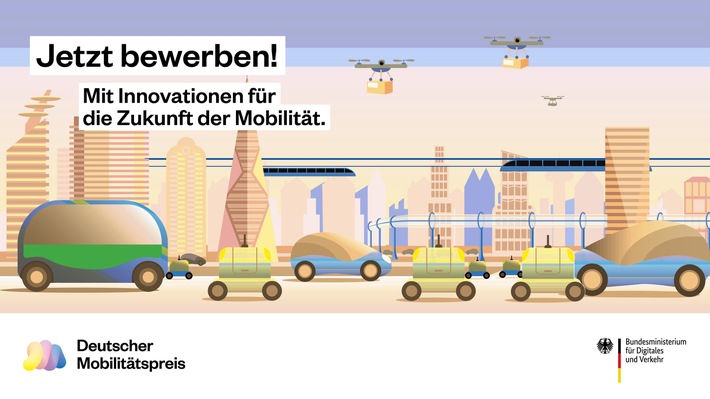Jetzt bewerben: Deutscher Mobilitätspreis 2023. Bundesminister Volker Wissing: „Wir suchen wirkungsvolle Innovationen mit Vorbildcharakter“.