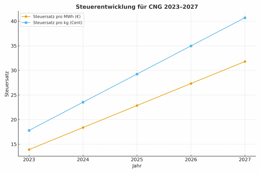 CNG (Compressed Natural Gas) gilt als alternativer Kraftstoff, der den CO₂-Ausstoß gegenüber Benzin und Diesel deutlich reduziert. Um den Umstieg attraktiver zu machen, hat der Gesetzgeber eine Energiesteuervergünstigung für Erdgas eingeführt, die ursprünglich bis 2026 befristet ist.
